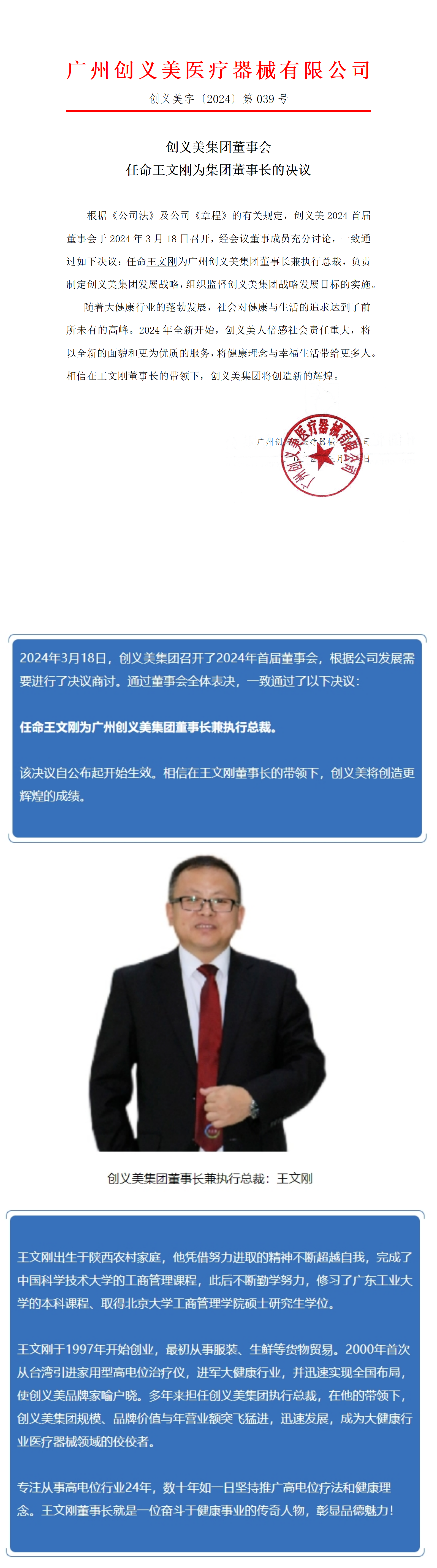關(guān)于董事會(huì)任命王文剛為集團(tuán)董事長的決議